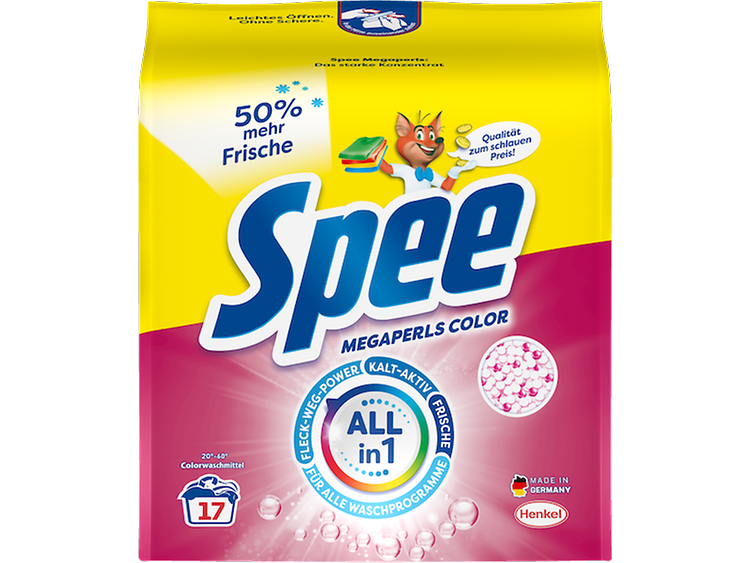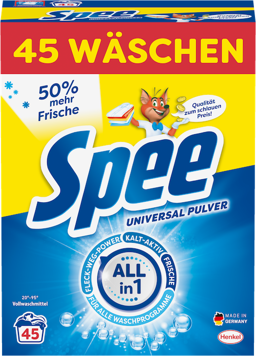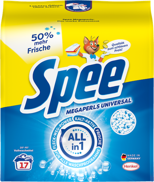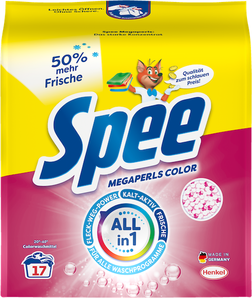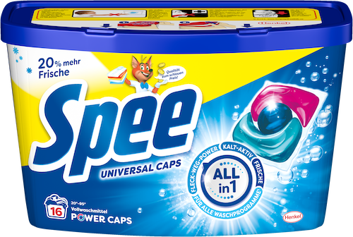 Mit dem neuen Spee All-in-1 Sortiment entwickelt Henkel die Marke Spee weiter. Ob als Caps, Flüssigwaschmittel oder Pulver – die neuen Spee All-in-1 Produkte vereinen alles, was Wäsche unkompliziert sauber und frisch macht. Sie entfernen selbst hartnäckige Flecken, sorgen für 50% mehr Frische, wirken effektiv bei niedrigen Temperaturen und eignen sich für alle Textilien1, sowie alle Waschprogramme2. Mit einem neuen modernen Duft und einer innovativen Duftverkapselungs-Technologie3, die durch Bewegung aktiviert wird, wird der Frischeduft nach und nach freigesetzt und sorgt für ein besonders langanhaltendes Dufterlebnis, das den ganzen Tag anhält. Damit bietet Spee eine zuverlässige All-in-1-Lösung – praktisch, leistungsstark und zum schlauen Preis.