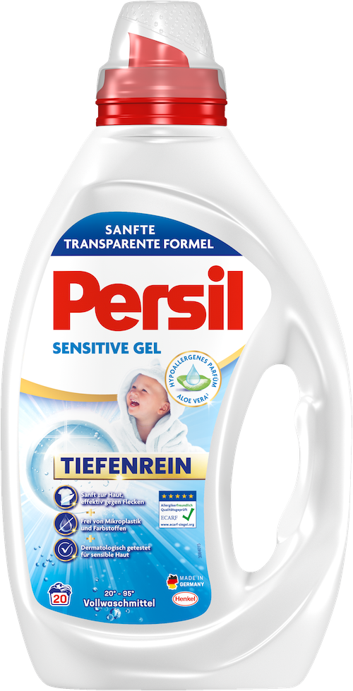 Das neue, transparente Sensitive Gel kombiniert hohe Waschleistung mit einer besonders hautverträglichen Rezeptur: dermatologisch getestet, ECARF-zertifiziert, ohne Farbstoffe und frei von Mikroplastik. Der hypoallergene Duft sorgt für ein angenehmes Frischegefühl, das speziell für empfindliche Hauttypen entwickelt wurde. Das neue Persil Sensitive steht damit für zeitgemäße Wäschepflege, bei der Hautverträglichkeit und reduzierte Zusatzstoffe im Mittelpunkt stehen.