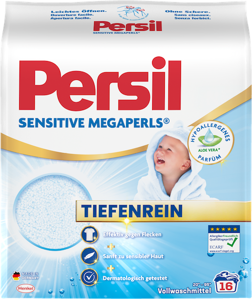 Ob Babykleidung, empfindliche Stoffe oder Alltagswäsche: Persil Sensitive sorgt für strahlende Sauberkeit und ein gutes Gefühl auf der Haut. Es bietet zuverlässige Reinigung und ist dabei besonders schonend zu Haut und Textilien. Die Hautverträglichkeit ist dermatologisch bestätigt und durch das Siegel der European Centre for Allergy Research Foundation (ECARF) zertifiziert. Die hypoallergene Formel ist auch für niedrige Waschtemperaturen geeignet und bietet eine optimale Lösung für alle, die Pflege, Reinheit und Hautfreundlichkeit verbinden möchten.