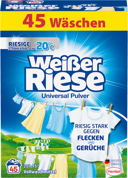 Die neue Formel von Weißer Riese entfaltet ihre volle Waschkraft bereits ab 20 °C und ermöglicht damit ein besonders energieeffizientes Waschen. Selbst hartnäckige Flecken und unangenehme Gerüche werden dank verbesserter Wirkstoffe und optimierter Duftkomponenten zuverlässig entfernt – für hygienisch reine Wäsche und langanhaltende Frische.