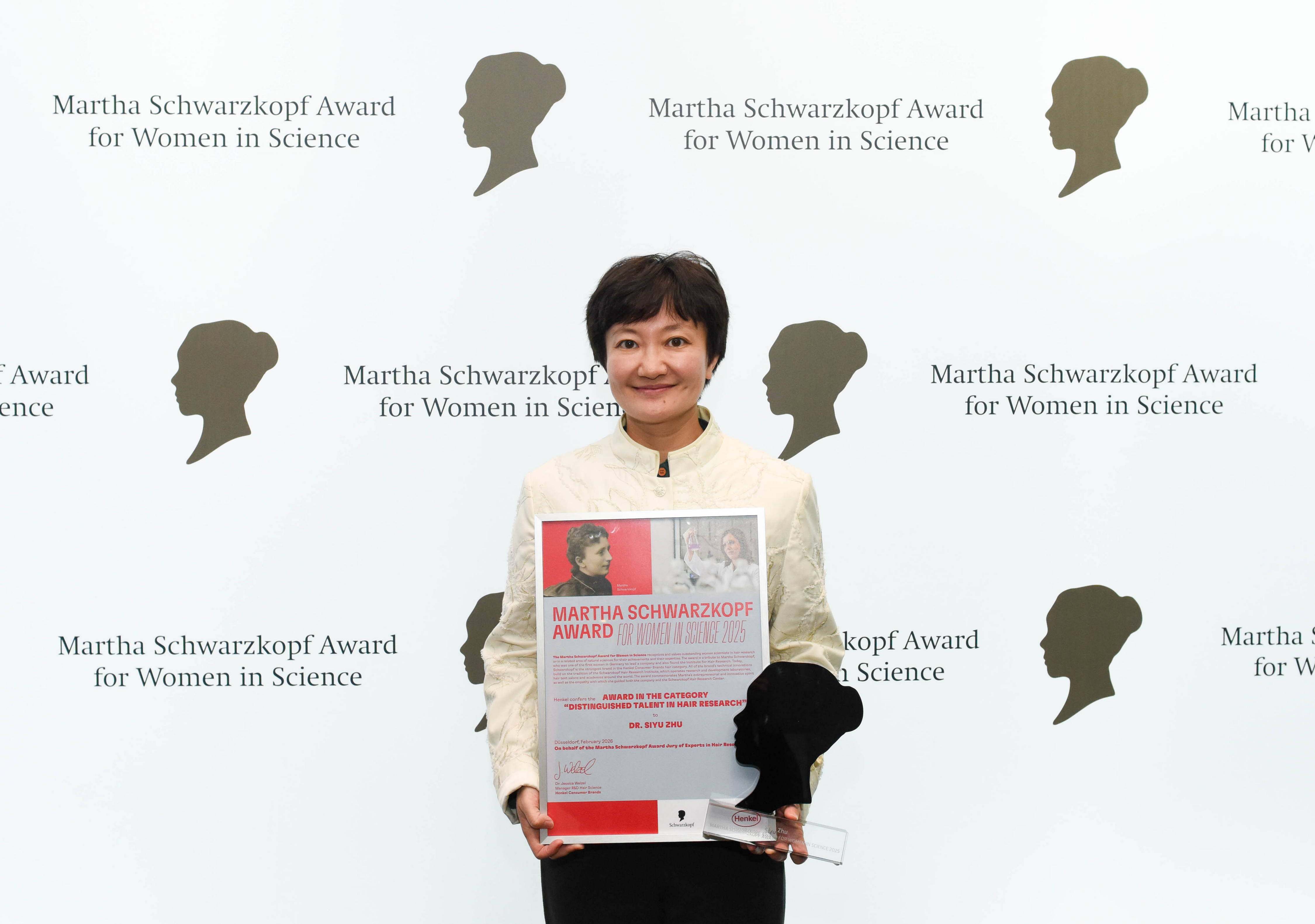 Für ihren innovativen Ansatz in der Haarpflegeforschung erhielt Dr. Siyu Zhu von der Tsinghua University in Peking, China, den „Distinguished Talent“ Award. Ihre Forschung fokussiert sich auf die Biologie der Haarfollikel und fortschrittliche digitale Designmethoden. Dabei entwickelt sie mit Hilfe von computerbasierten Techniken neue Moleküle mit großem Potenzial zur Förderung des Haarwachstums und der Kopfhautgesundheit.