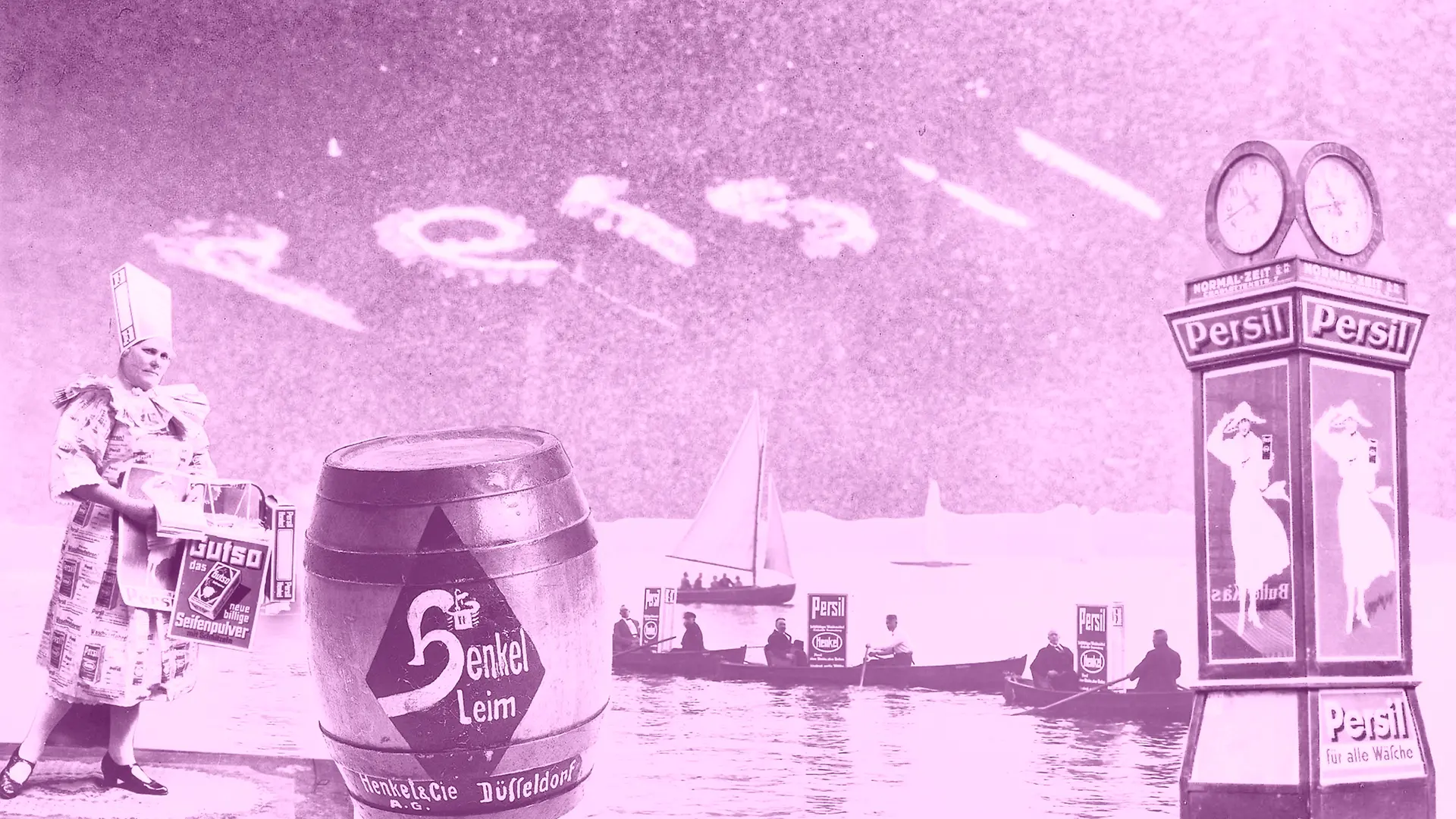 Nach dem Ende des Ersten Weltkriegs ist die Geldentwertung in vollem Gange und steigert sich 1923 zur Hyperinflation. Trotz der Wirtschaftskrise investiert Fritz Henkel in damals ungewöhnliche Werbemaßnahmen, um auf seine Produkte aufmerksam zu machen und möglichst viele Konsument:innen zu erreichen. So entsteht u. a. die Weiße Dame, die in den Folgejahren zur Werbeikone wird.